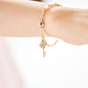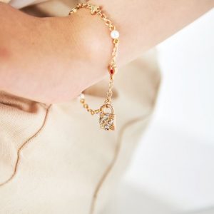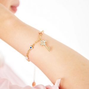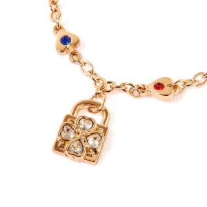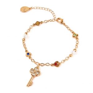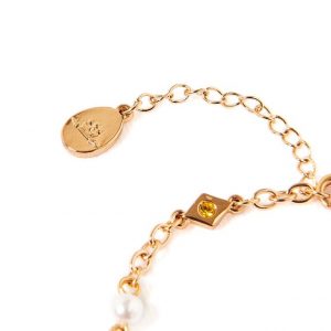 作中に登場するアイテム「ハンプティ・ロック」と「ダンプティ・キー」をモチーフとし、ガラスストーンをはめたトランプマークをあしらったブレスレットです。